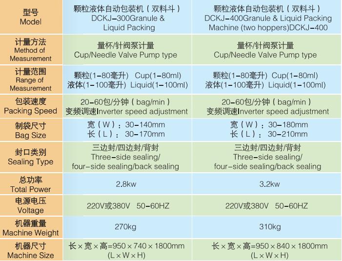 DCKJ-300/400顆粒/液體兩用包裝機(jī)